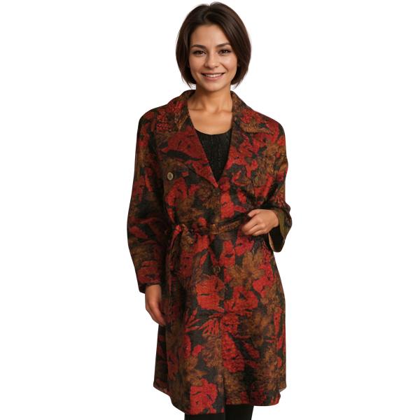 Wholesale 1362 - Satin Crushed Trench Coat w/ Belt P09<br>Floral - Navy-Taupe-Magenta - M-L