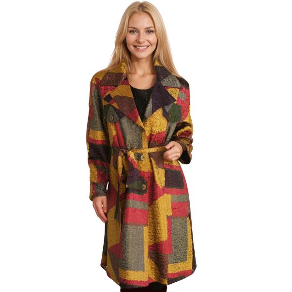 Wholesale 1362 - Satin Crushed Trench Coat w/ Belt P13<br>Block Print Coral-Silver - S