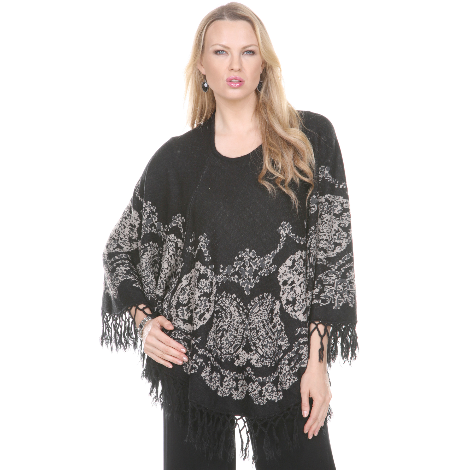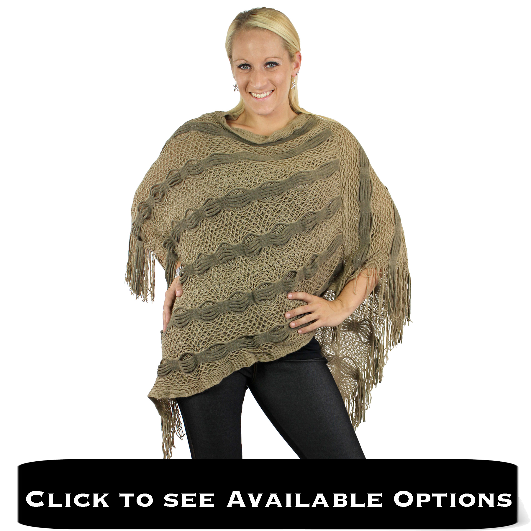 This poncho has a unique wave overlap knit design with the soft and luxurious feel of cashmere.
