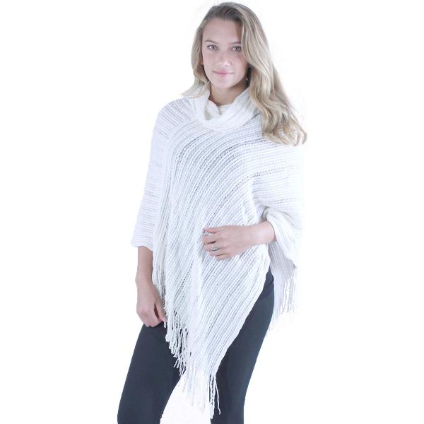 A diagonal pattern of lurex and sequins adds a subtle touch of sparkle to this cowl neck poncho. The weight is just right for cool days or indoor winter wear.