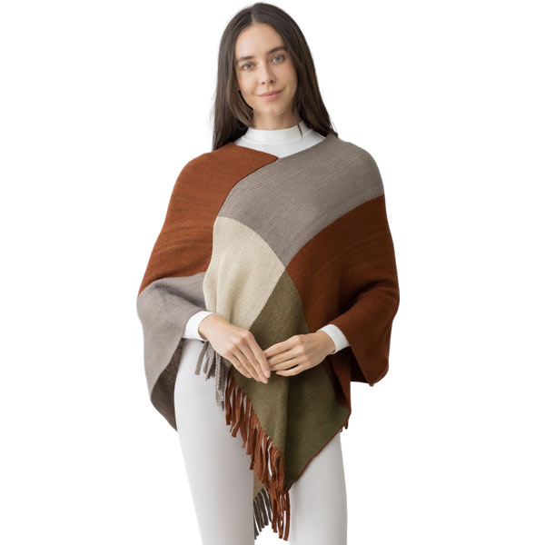 Knitted in color block angles with bohemian self fringe.
