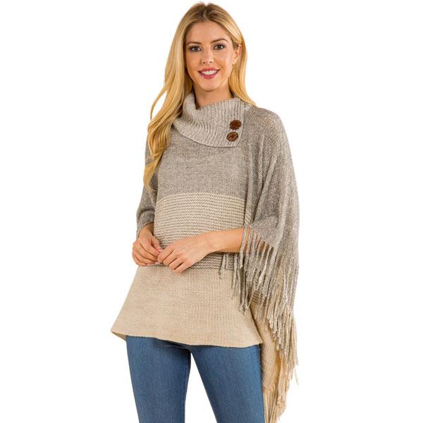 4209 - Poncho - Ombre Cowl-neck w/ Wooden Buttons
