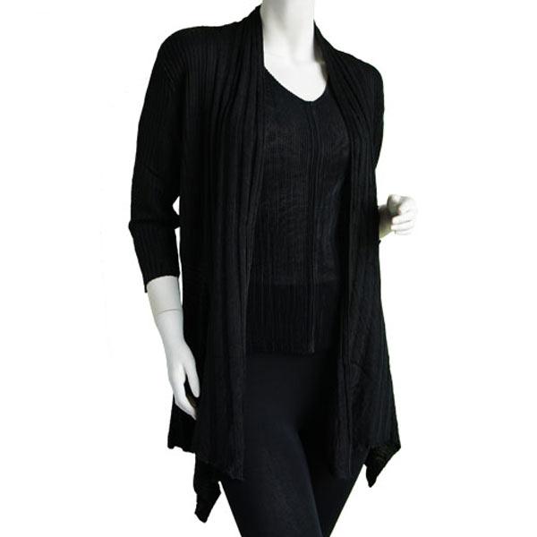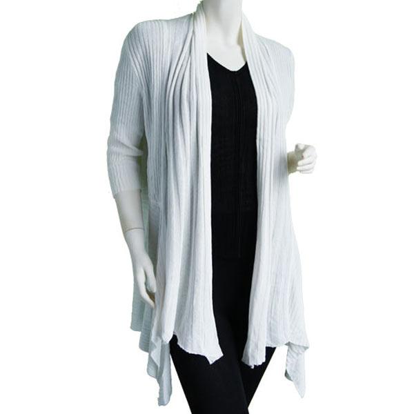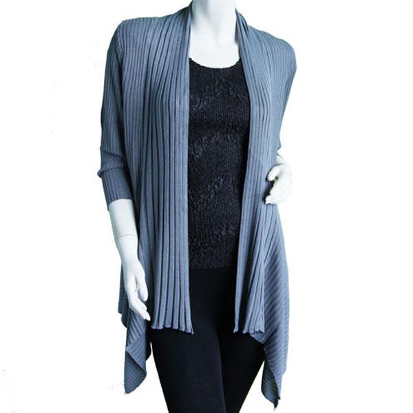 Longer...more dramatic length. One sweater jacket, two hot fashion looks! Wear it label side up for the classic jacket look with asymmetric front drape or flip it...label side down for the popular loose shrug look. These sweater jackets have beautiful horizontal and vertical ribbed detailing.