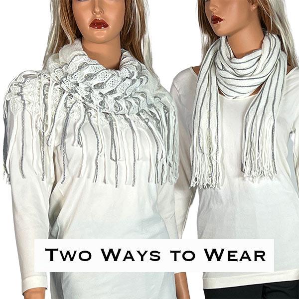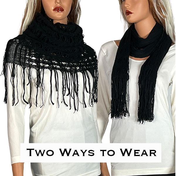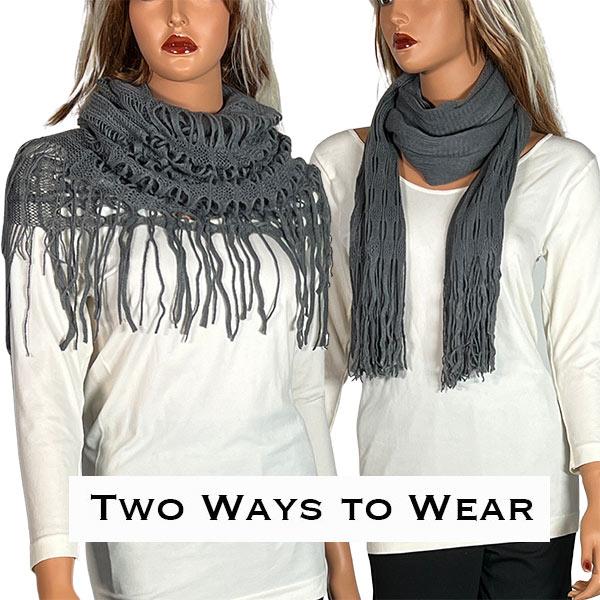 This scarf is designed with a tight weave on one side and a cut out knit on the other. It can be opened to be or as an infinity with ease or worn as a long art scarf.