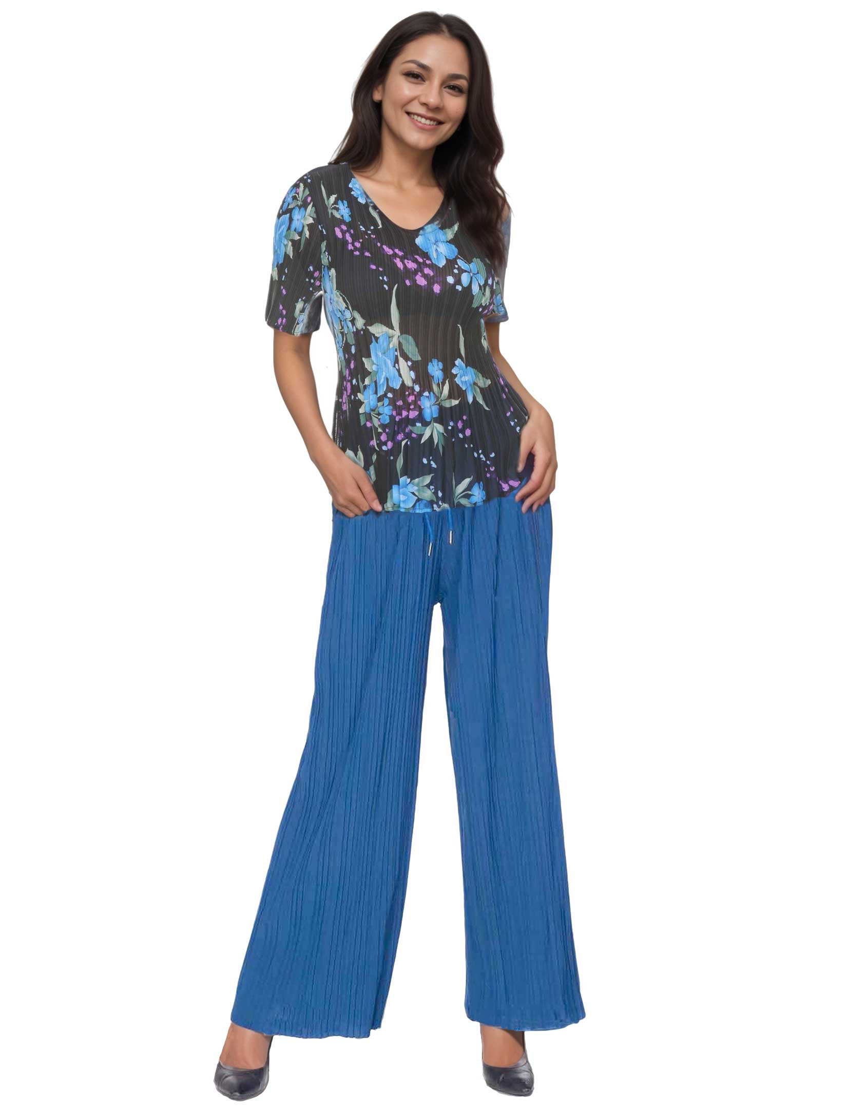 Pants with a soft easy flowing pleats in a comfortable mid-weight fabric. A one size stretchy waistband and no-sew hems make these pants a sure winner.
