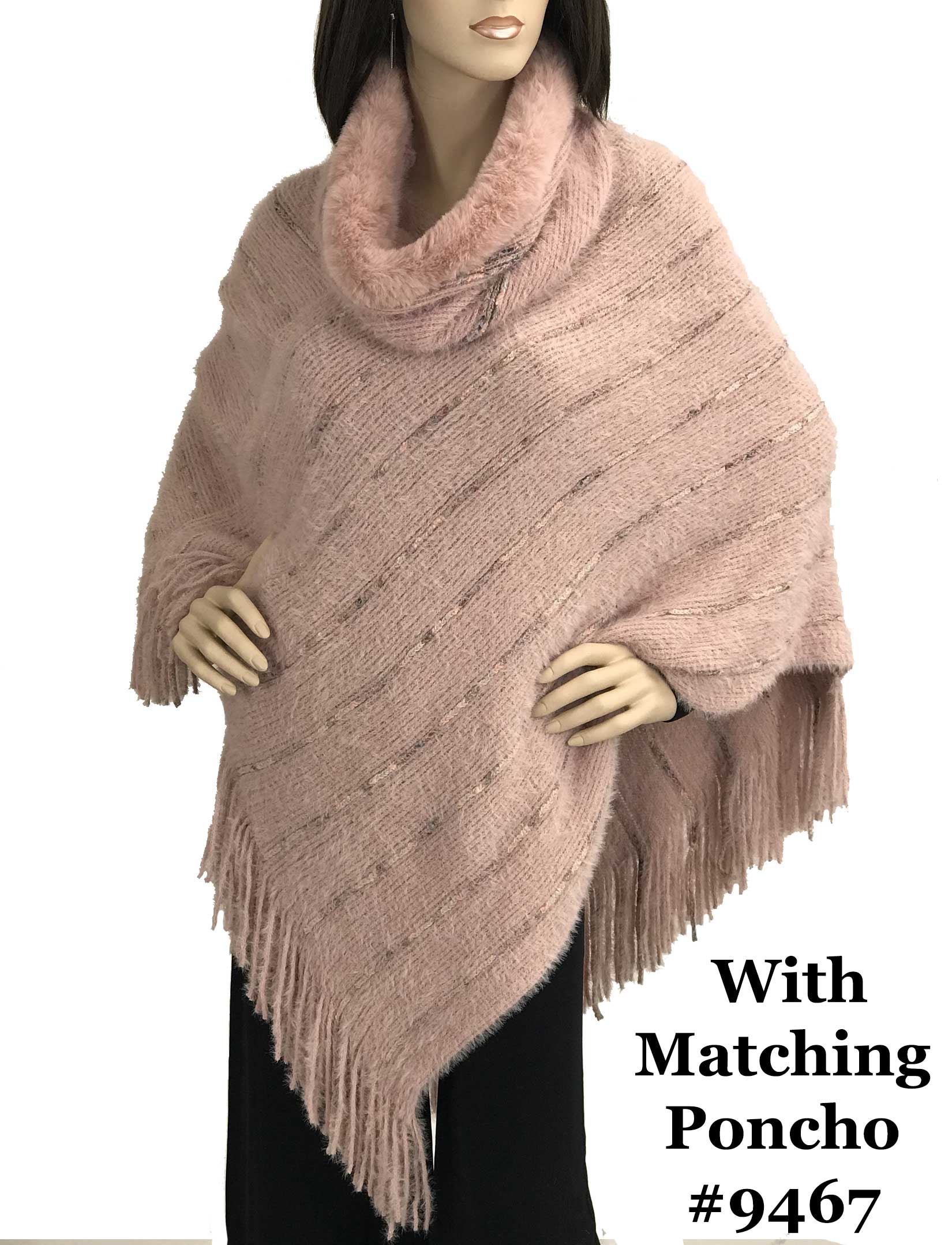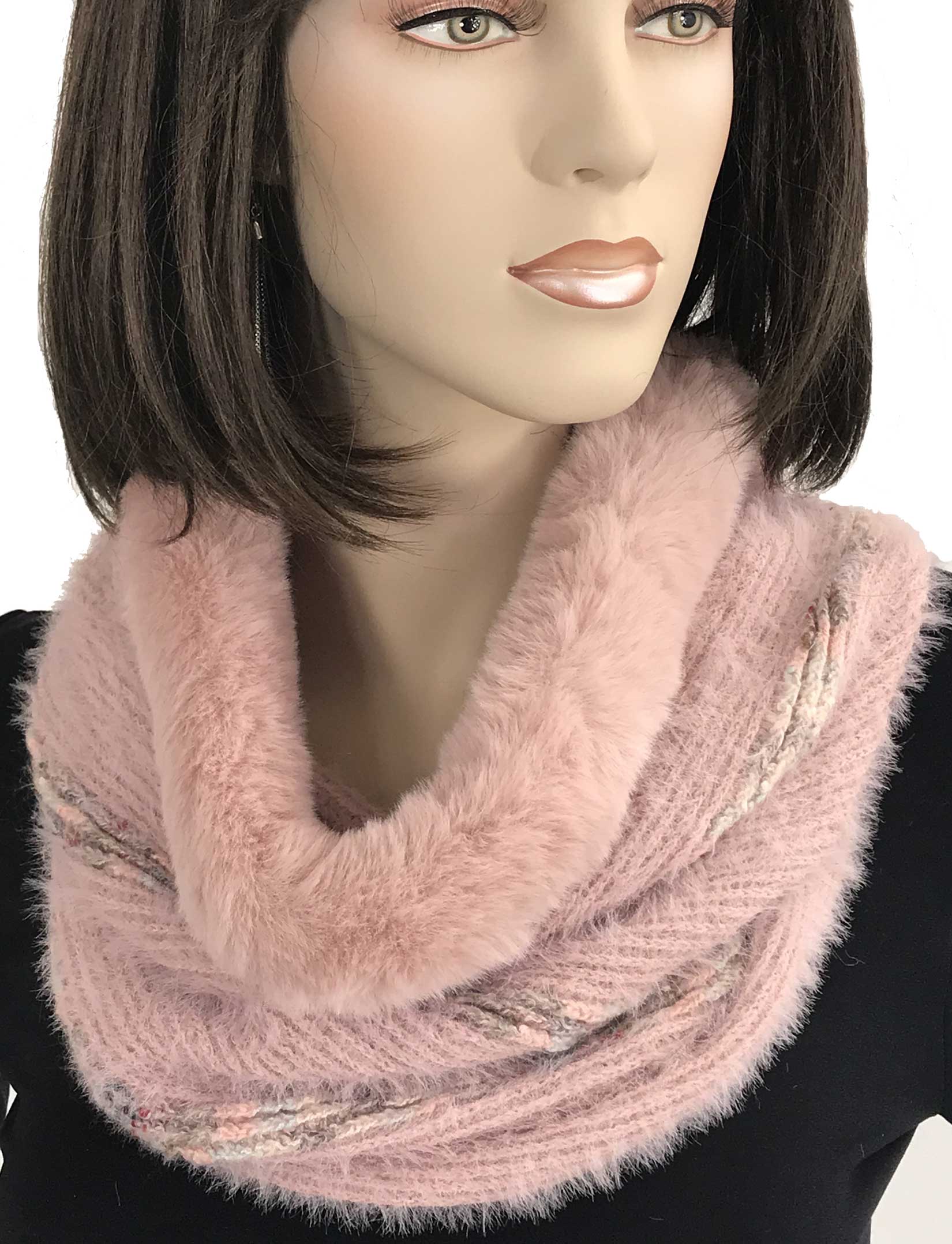 Cowl Neck Scarves - Fur Trim Eyelash Knit 9493