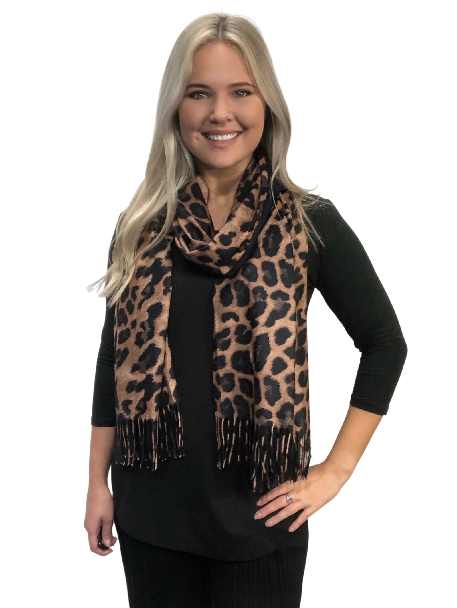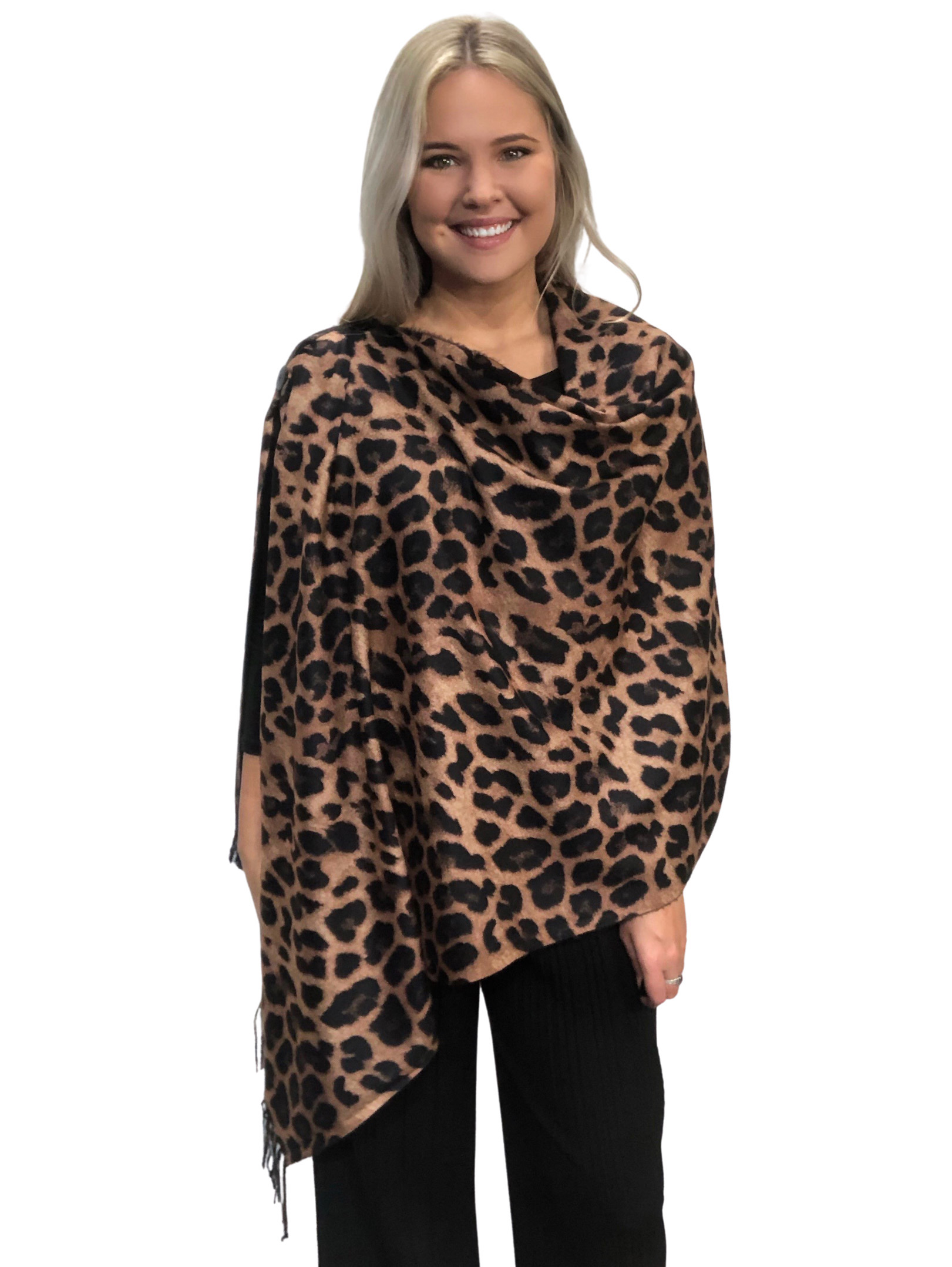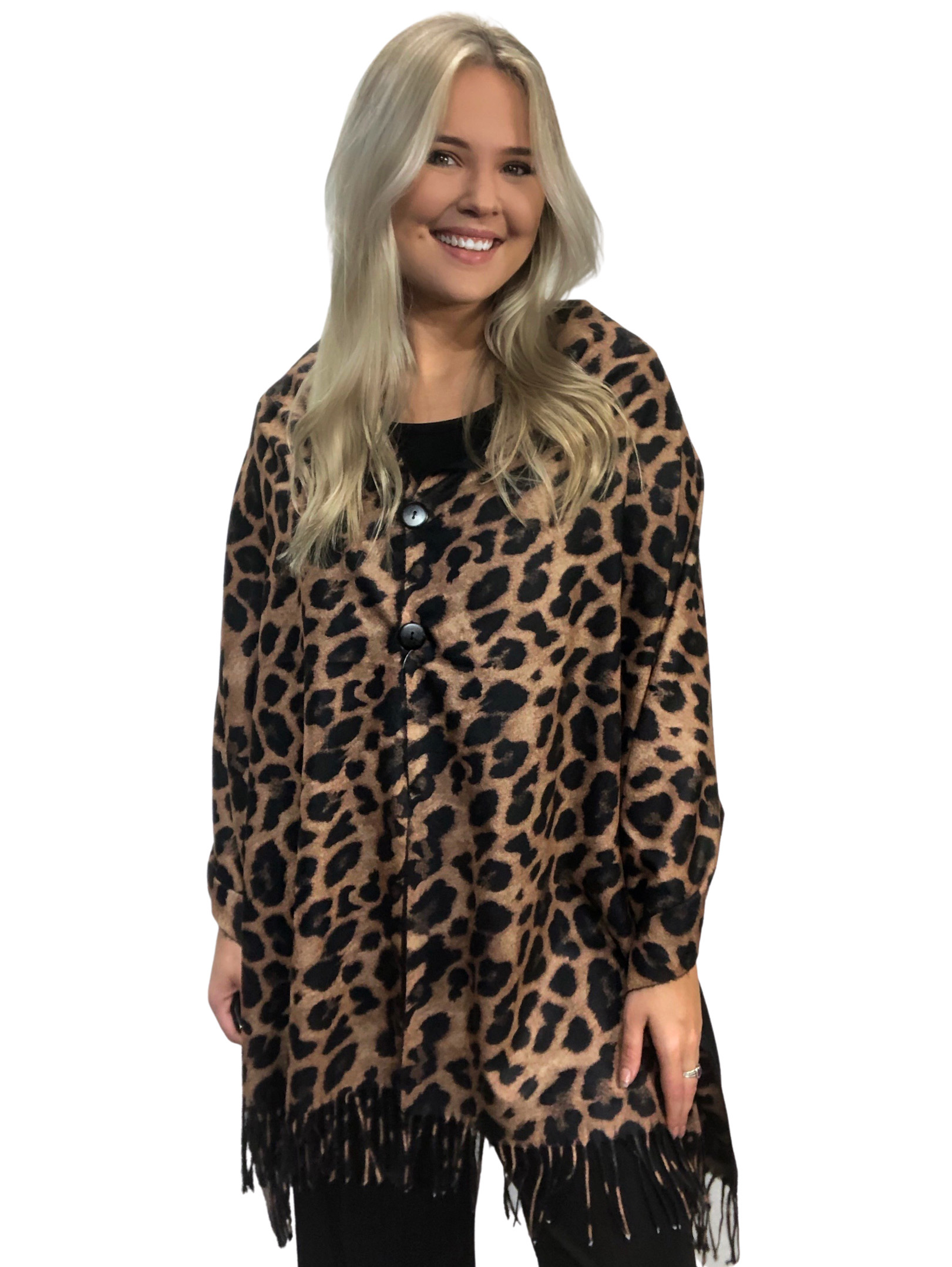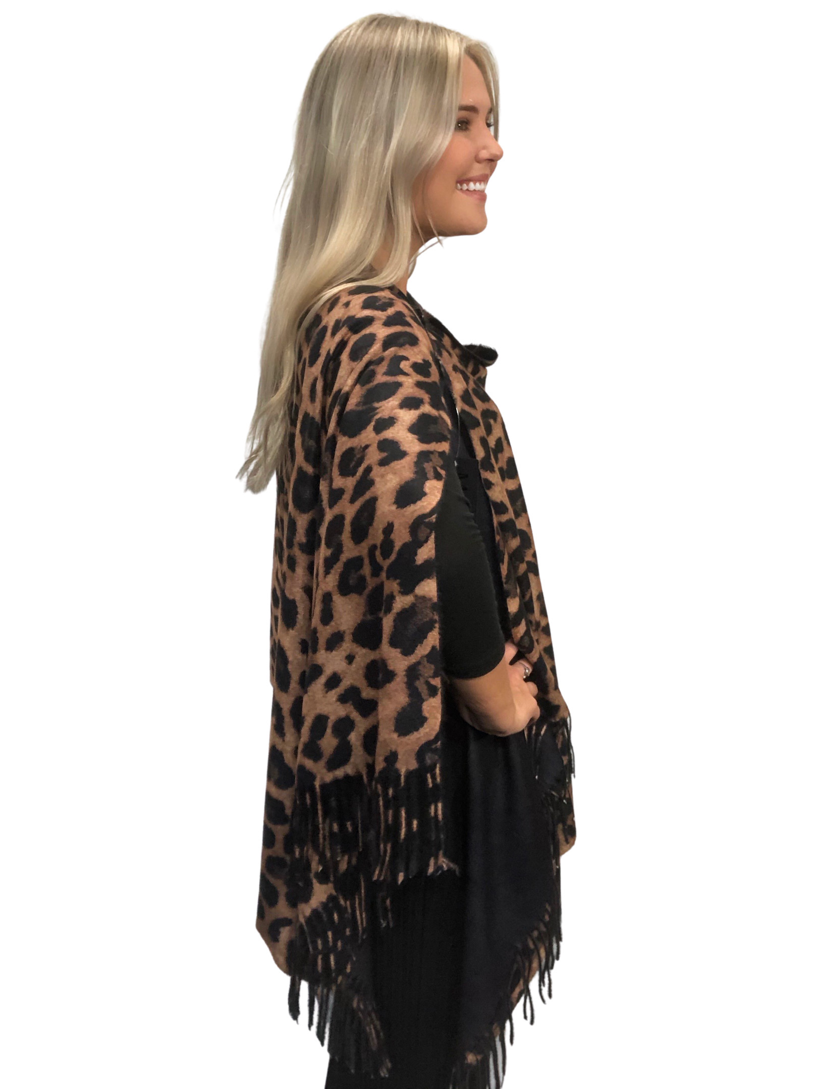 3305 - Suede Cloth Animal Print Button Shawl