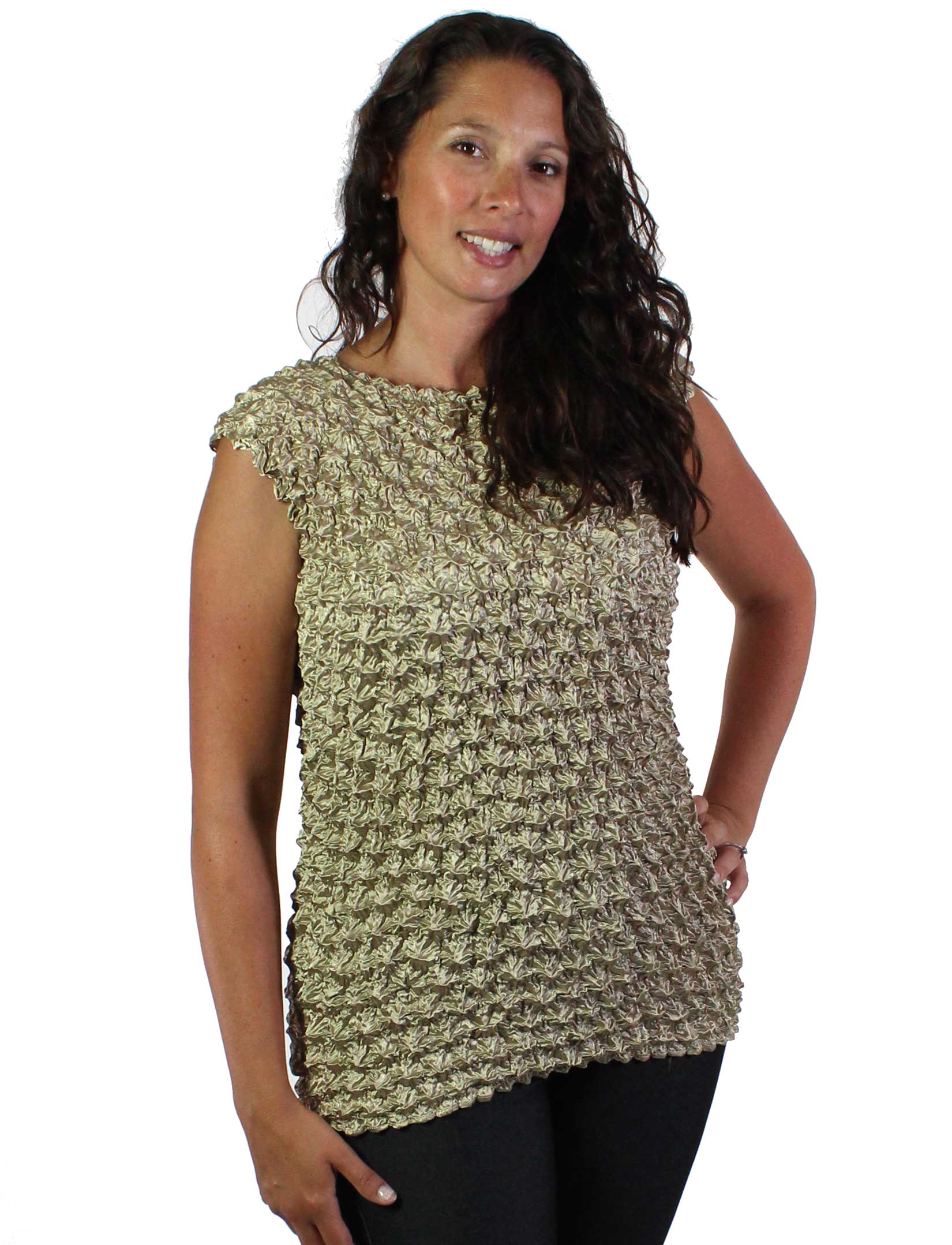 These tops may look tiny but they are designed to stretch to full size because of the rows of pops or bubbles.