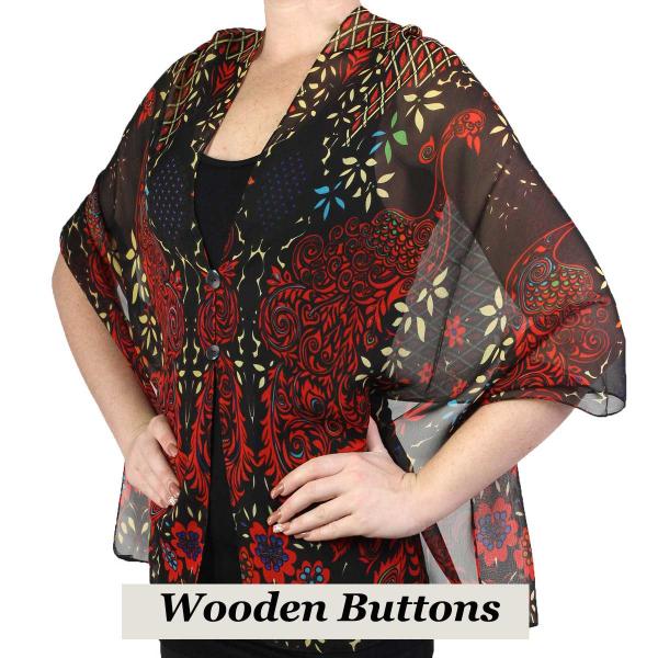 These shawls are made with our silky lightweight chiffon attached with buttons placed to create a little coverup.